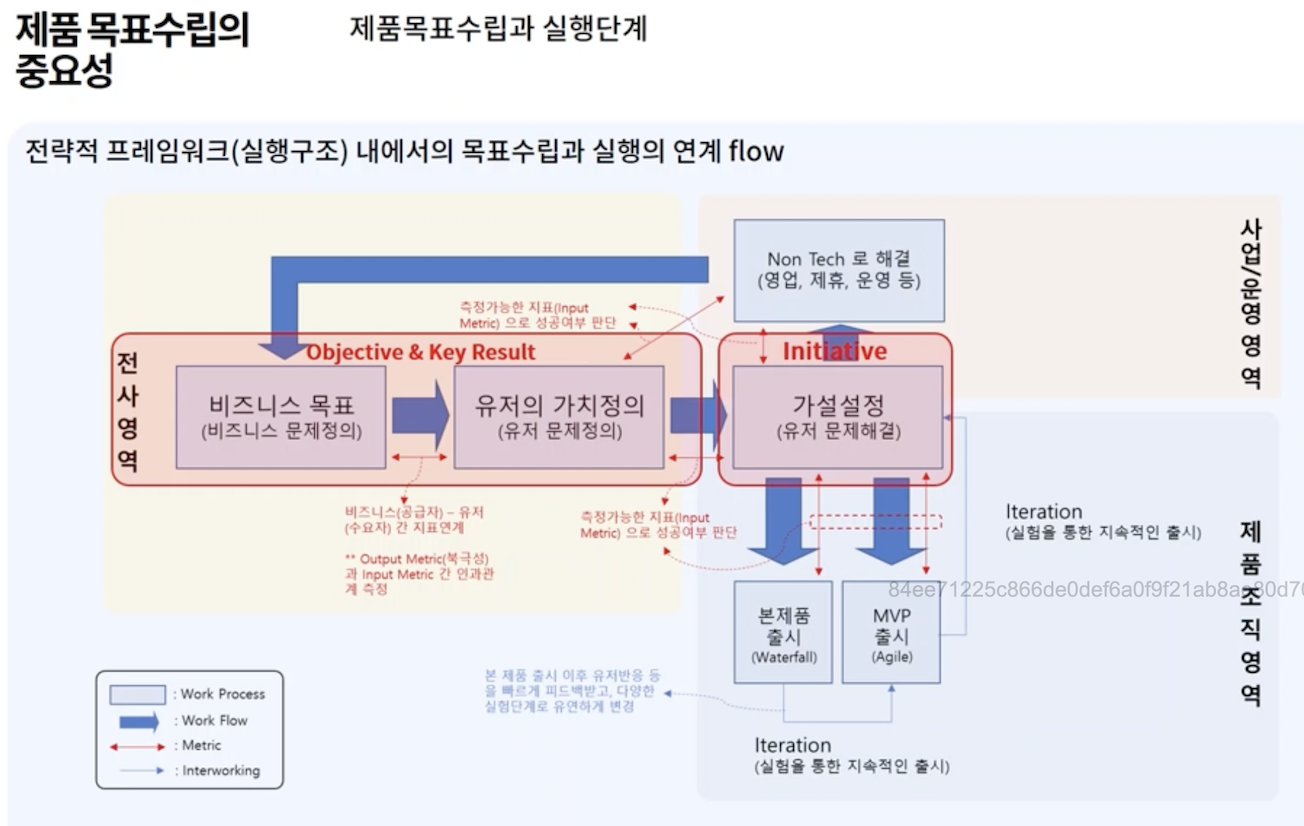 - 제품 목표 : 제품을 통해 이루고자 하는 명확한 결과 → 핵심 결과