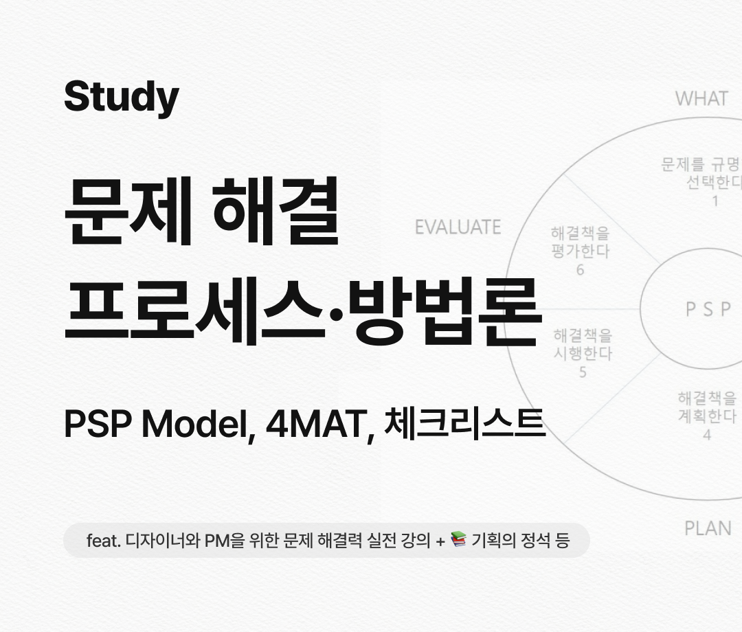 한가한 토요일, 인프런의 문제해결 프로세스와 체크리스트에 대한 부분의 강의를 듣고있었다. 그러다가 현재 진행중인 PM 부트캠프 팀원들이 이런걸 보면 좋을텐데! 하면서 이것저것 모으고 정리하고 작성하다보니 좋은 내용들을 압축한 글이 되었다. 그래서 블로그에 바로 글을 작성하는중이다 🤗