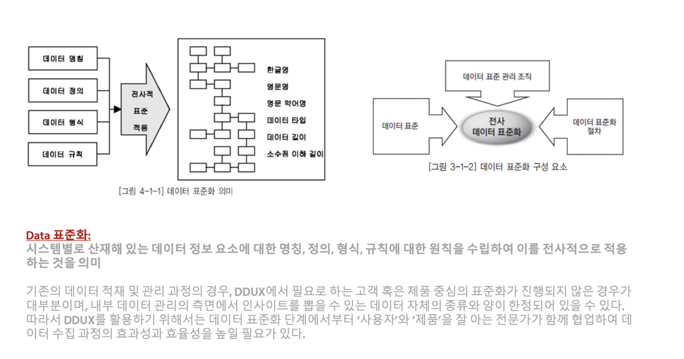- 정보시스템 개발 단계에서는 개발 수행사의 품질 관리 조직을 통해 표준에 대한 관리가 이루어진다. 유지 보수 단계에서는 개발 단계에서 수립된 표준과 표준 준수 관리에 대한 역할을 맡은 전문적인 데이터 관리 인력을 활용치 않고 개별 유지 보수 인력들에 의존한다.