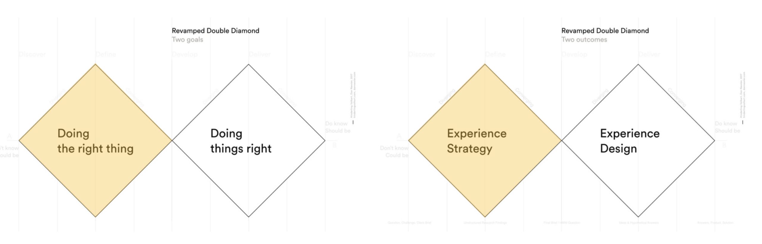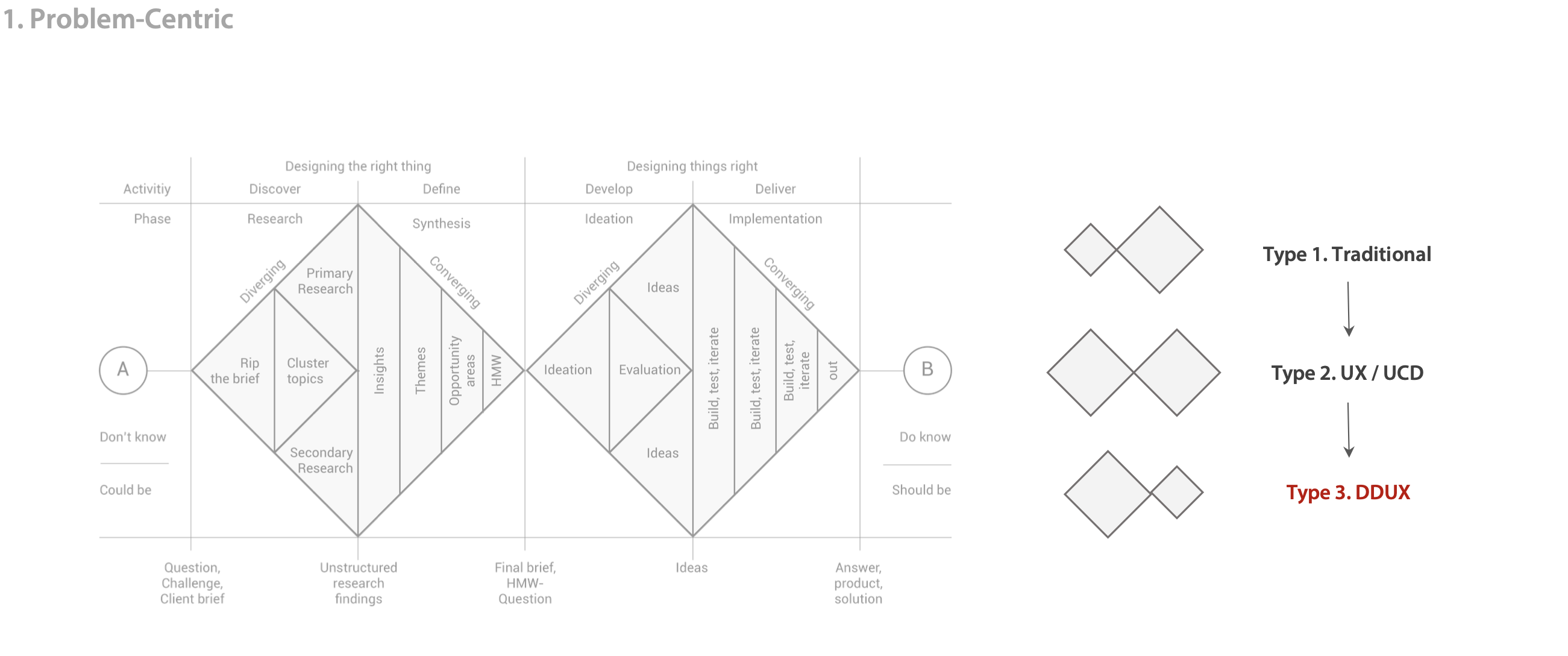 데이터 드리븐 UX에서는 좀더 문제(Problem) 기반, 고객의 니즈 기반으로 했을 때는 앞에 다이아몬드에 대한 인풋과 리소스가 많아져야 한다.