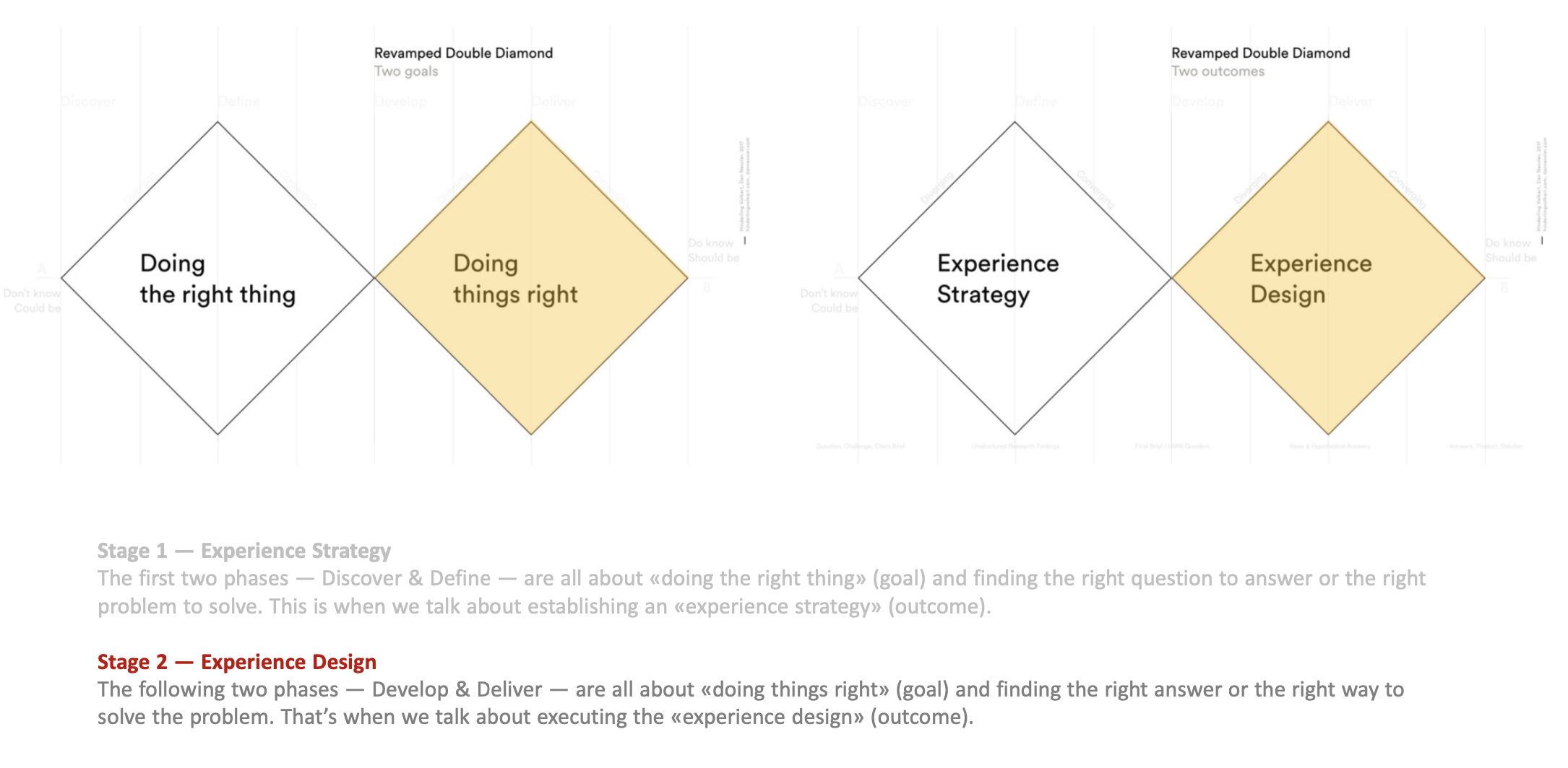 디자인 씽킹 프로세스에서는 크게 두 개의 단계를 강조한다.