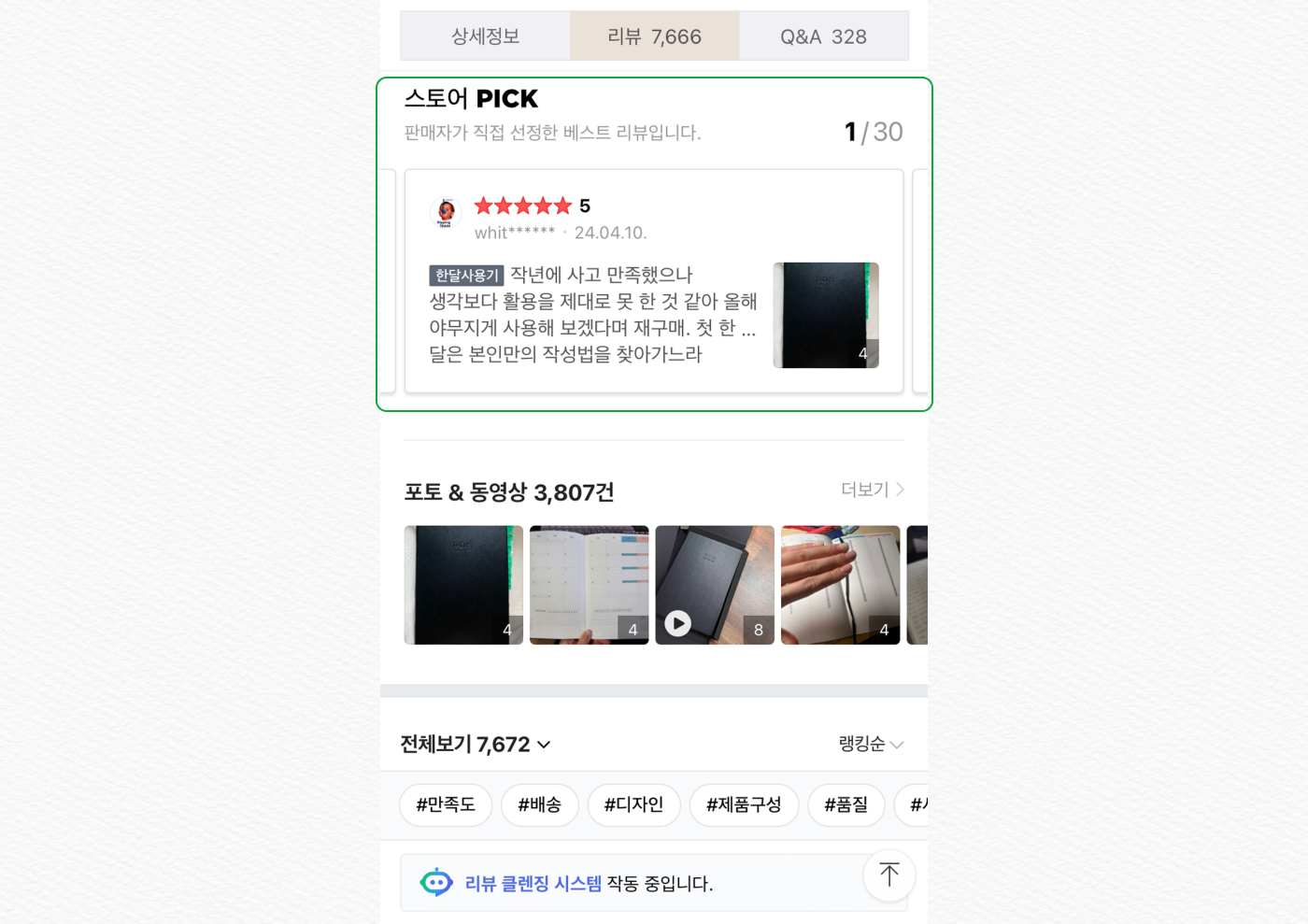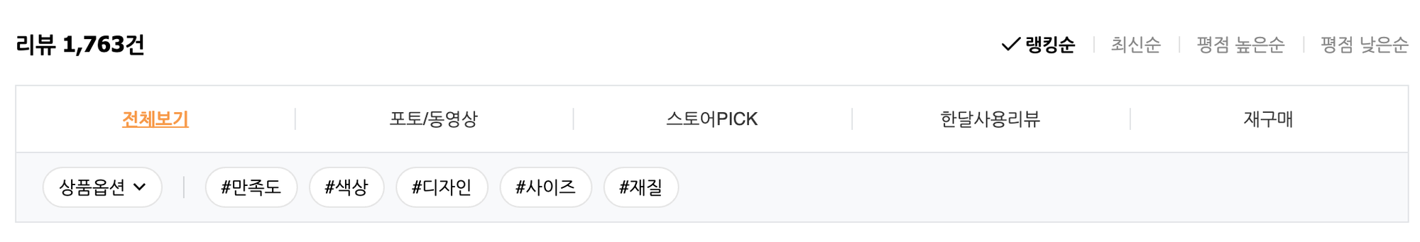 기존에는 상품 리뷰 컴포넌트에서 스토어 PICK 후기가 포토+동영상 모아보기, 전체 리뷰 내용 보다도 위에 존재
